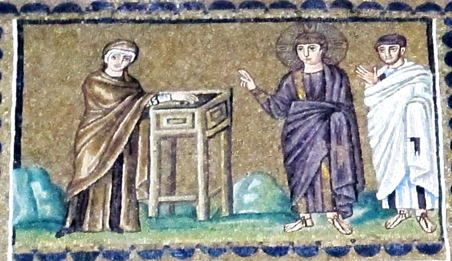 Köyhän lesken ropo - l’obolo della vedova - mosaiikkityö Ravennan Basilica di Sant’Apollinare Nuovo -kirkosta